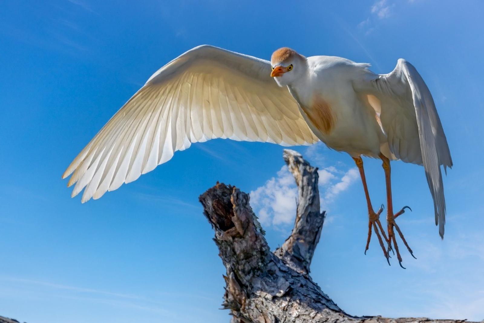 Cattle Egret about to touch down.